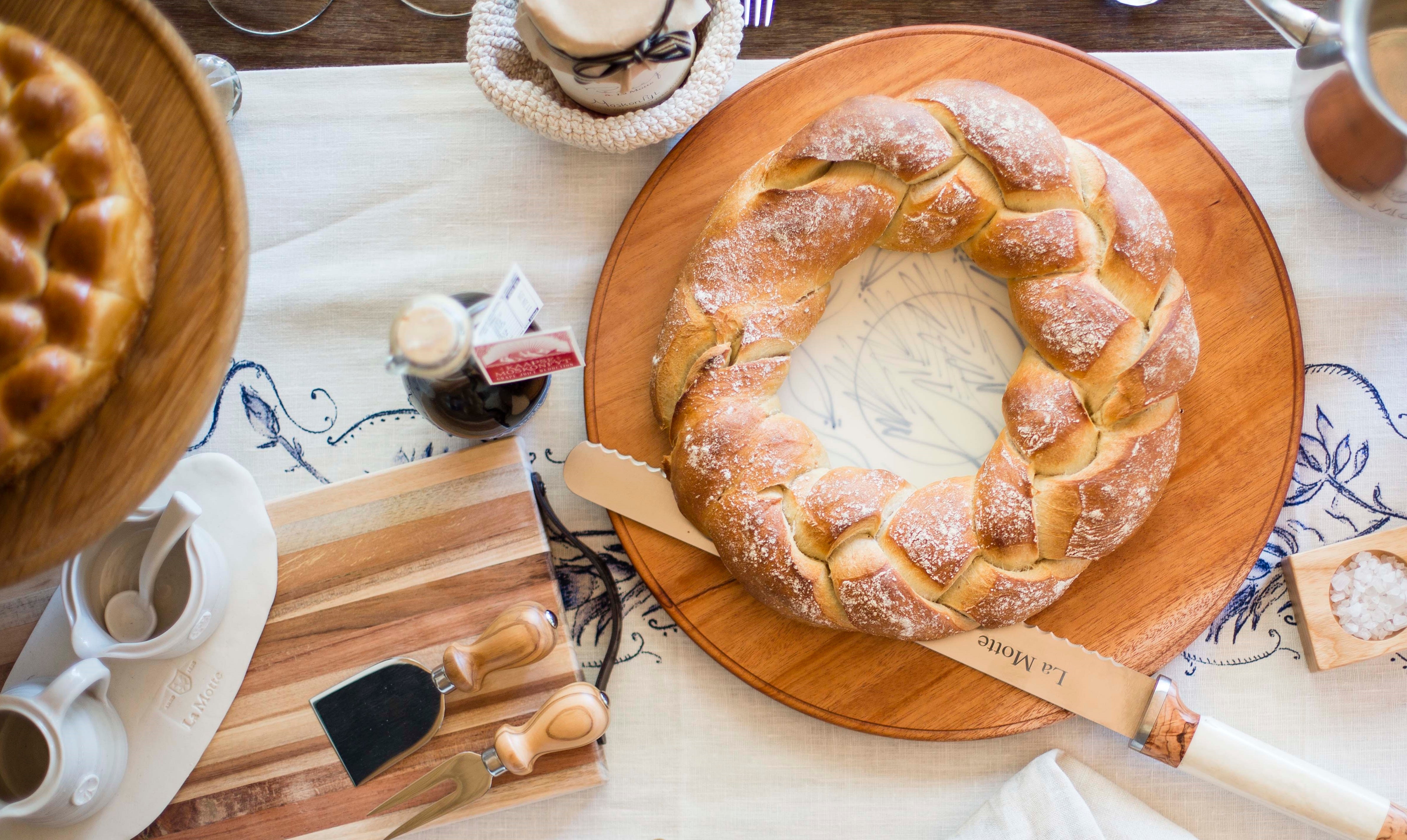Divide in two, braid, then bake for 25 minutes in a pre-heated oven at 200 ˚C.