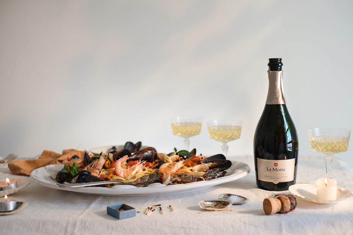 Shellfish makes the perfect partner for the 2019 La Motte Méthode Cap Classique – not only to serve with the pasta but use a splash to steam open the mussels and clams too."
