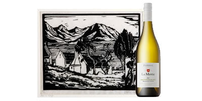 Huis en Berge – the Pierneef lino cut on the back label of 2012 La Motte Pierneef Sauvignon Blanc (Organically grown).