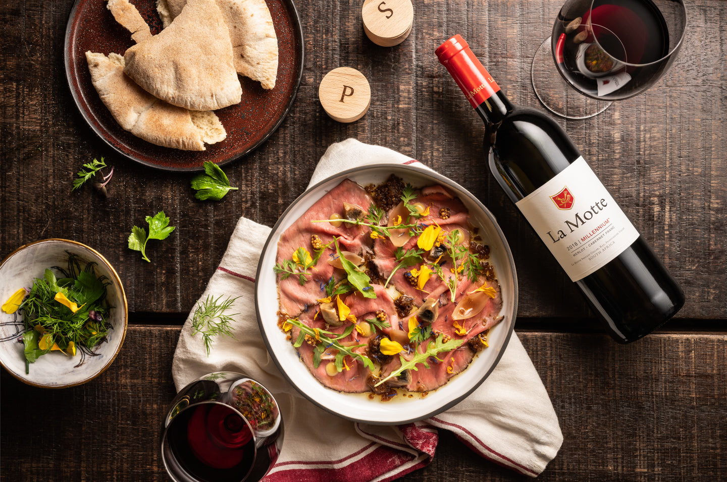 Garnish the finished dish with all your pickles and some wild rocket or a few fancy herbs and flowers. Enjoy with a glass of 2018 La Motte Millennium.