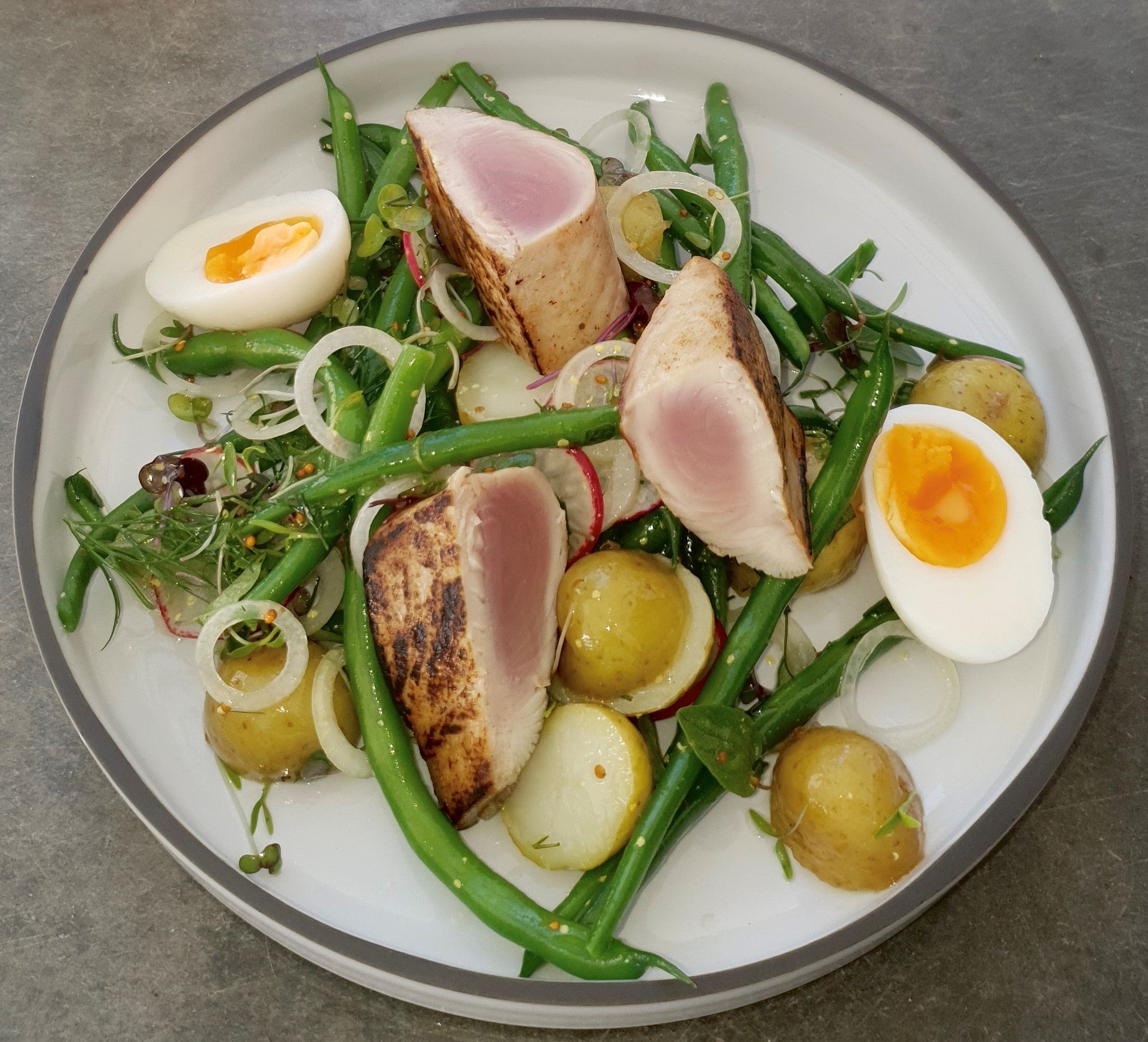Seared Skipjack Tuna Salad with Green Beans, Baby Potatoes & Mustard Vinaigrette