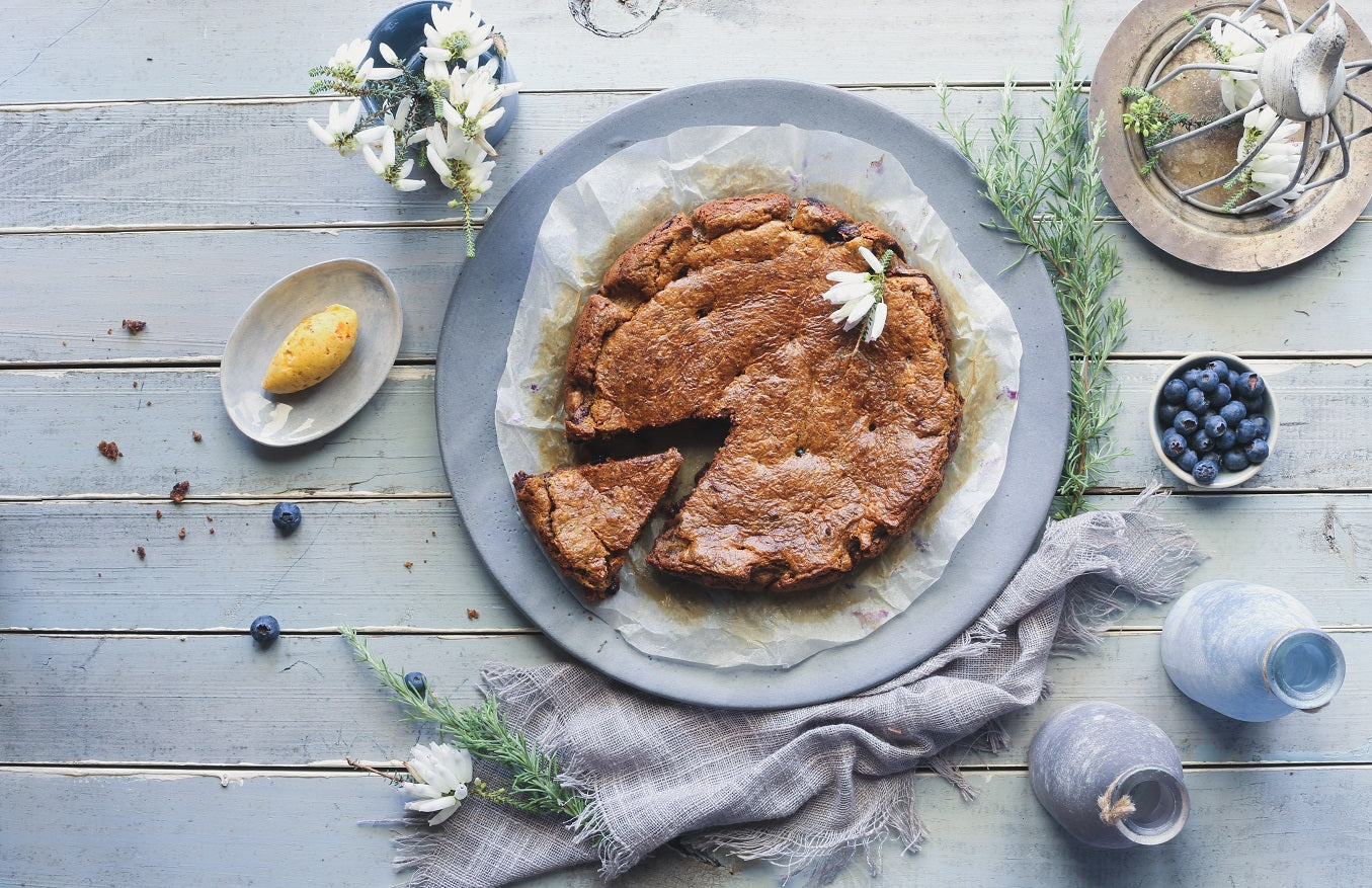 Spiced Savoury blueberry, coriander and citrus scones with charred red pepper and basil butter