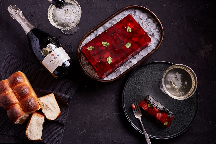 Use a sharp knife to cut slices and top with mint leaves and a drizzle of rose syrup. Serve with well-chilled glasses of La Motte Méthode Cap Classique.