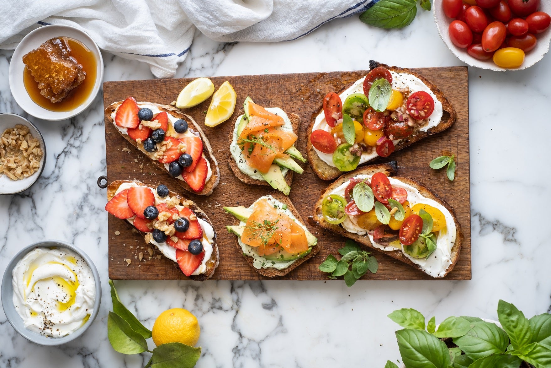 Celebrated food stylist, recipe developer and passionate cook and cookbook author, Sam Linsell are all about a healthy lifestyle and after chatting to the baking team at the La Motte Bakery and tasting the variety of breads, she came up with a selection of beautiful toppings to make you feel even better about choosing bread.