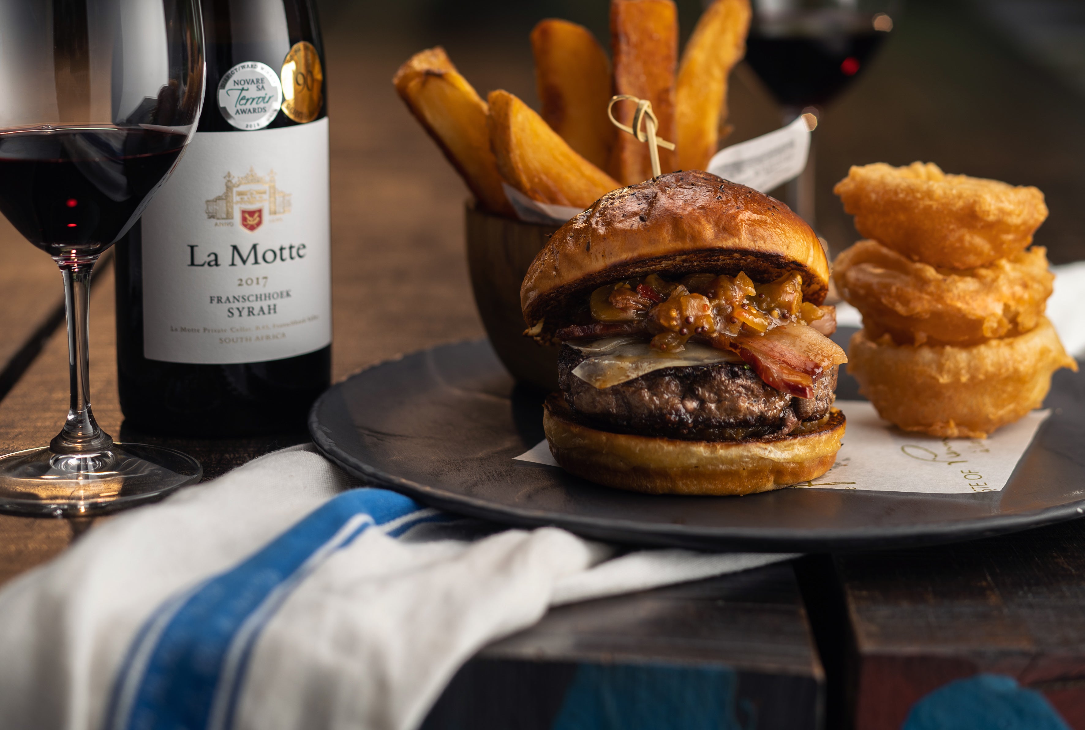 - At La Motte we top the patty with a delightful slice of a matured cheese like Dalewood Huguenot and a good helping of caramelised onions before we scoop the chutney on top. You can, however, opt for only the chutney and still have the most delicious burger.