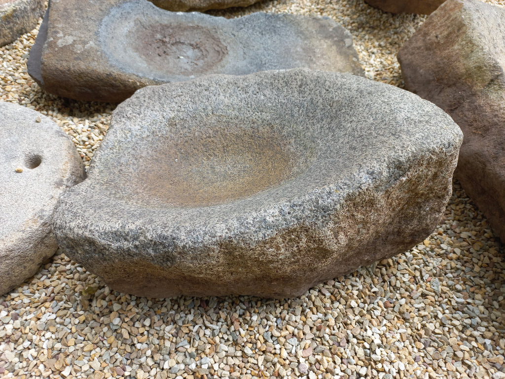 The first nations of southern Africa used pestles and pestle-mullers for pounding and grinding seeds and roots, snuff and ochres. In some local cultures, pestles and mortars are still used today. One can distinguish between the end pestle-mullers and circular and oval pebbles that were used with a distinct backward and forward motion, which produced a convex rubbing face. Preferred grinding surfaces varied. Some consisted of mortars hollowed out of a boulder, often used by Lesotho women, and pestles made of large slabs of dolerite which would have required two hands to lift them. Xhosa women more often used wooden pestles and moveable stone mortars. Mortars were sometimes also carved from tree trunks, which would slope to a well-defined base. This type of mortar was used by communities in Botswana, Swaziland and the northern parts of South Africa. In some instances, the pestle was a stout pole about a metre long, rounded and the ends and waisted in the middle, or with a knob.