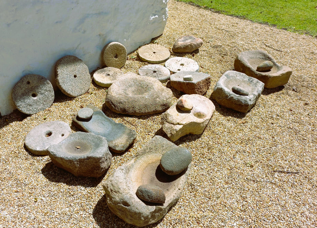 Another remarkable find in the collection is a slanted grinding stone where the women could kneel behind the stone and grind downwards, which was an easier grind for the wheat to flow down onto a piece of cloth or basin (see saddle-quern). These different types of hand mills indicate how milling has progressed and changed over time.