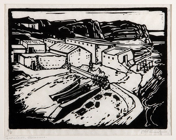 Linosnee / Linocut. 19.4 x 25.2 cm. La Motte Hoofhuis / Manor House. Versameling / Collection: La Motte Wynlandgoed / Wine Estate