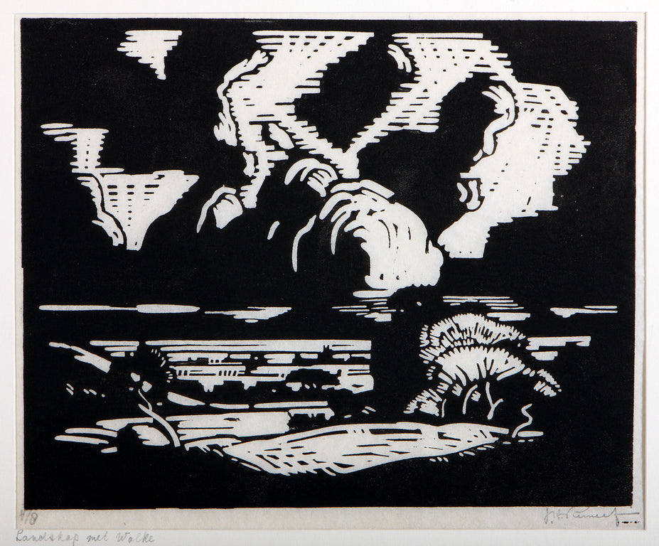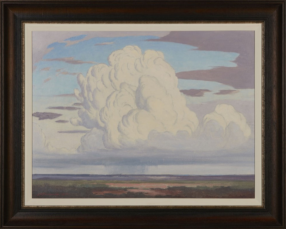 An element of nature that contributes greatly to the atmosphere and how one feels, is the weather, with its play of clouds in the blue sky. One of the themes Pierneef developed, was that of clouds — he used them in various styles and formations to compose his landscapes.